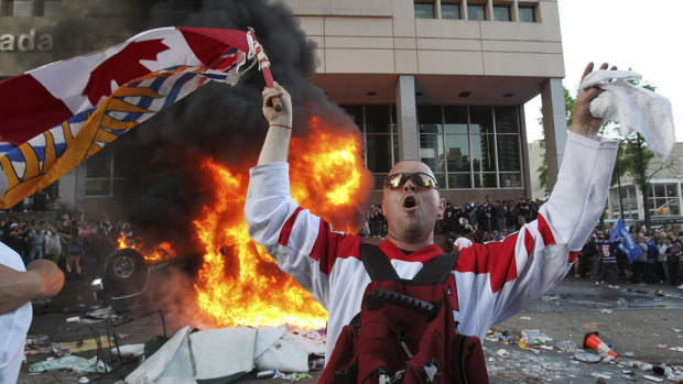 After the game, riots broke out in Vancouver and they clearly were upset with the Canucks losing... Unhappy fans are burning and flipping cars, beating up Boston Bruins fans, breaking windows, clashing with riot police, looting, and setting fires throughout downtown Vancouver. Here's one link to a vid of the riots and here's another. Article written up after most of the mayhem can be found here. Here's a video of the stream of the riot I was watching last night.